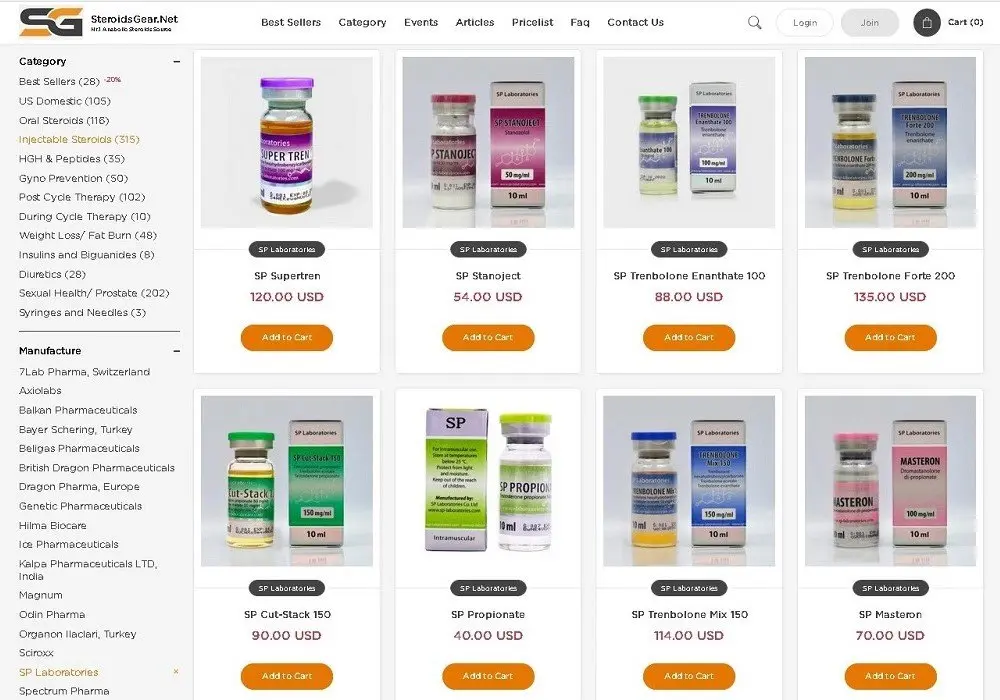 SP Laboratory produces larges and top variety of anabolic steroids product: grow hormone (SP Tropin 10iu), Injectable Steroids (SP Stanoject, SP Trenbolone Enanthate 100, SP Propionate, SP Nandrolone, SP Cypionate), oral steroids (SP Turabolan, SP Stanozol, SP Oxymetabol, SP Oxanobol, SP Metandienon).